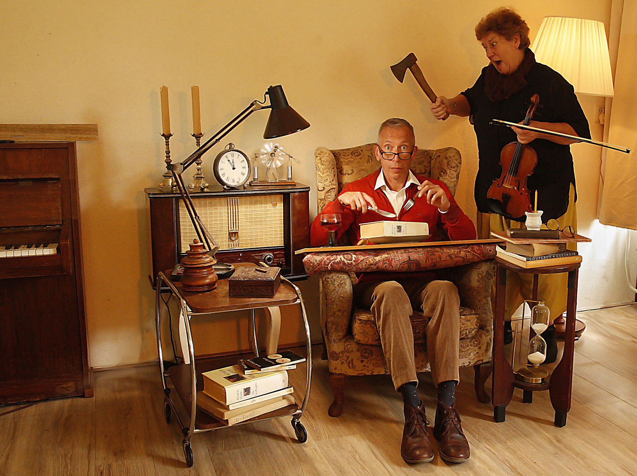 Geen opgewarmde hap natuurlijk. Er komen nieuwe verhalen op tafel. Violiste Monique Lansdorp overgiet die met een verrukkelijke muzikale saus. De kok van dienst laat zich inspireren door het kookboek van Dahl en serveert een tongstrelend driegangenmenu.